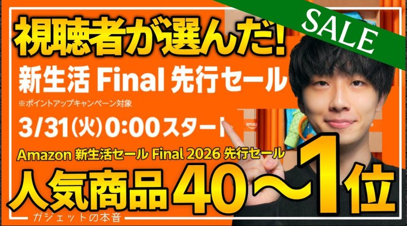 【amazon新生活Final2026】視聴者が購入した人気商品TOP40!!売り切れ注意のおすすめガジェット、生活用品を紹介!!2026/3/31〜4/6